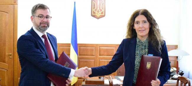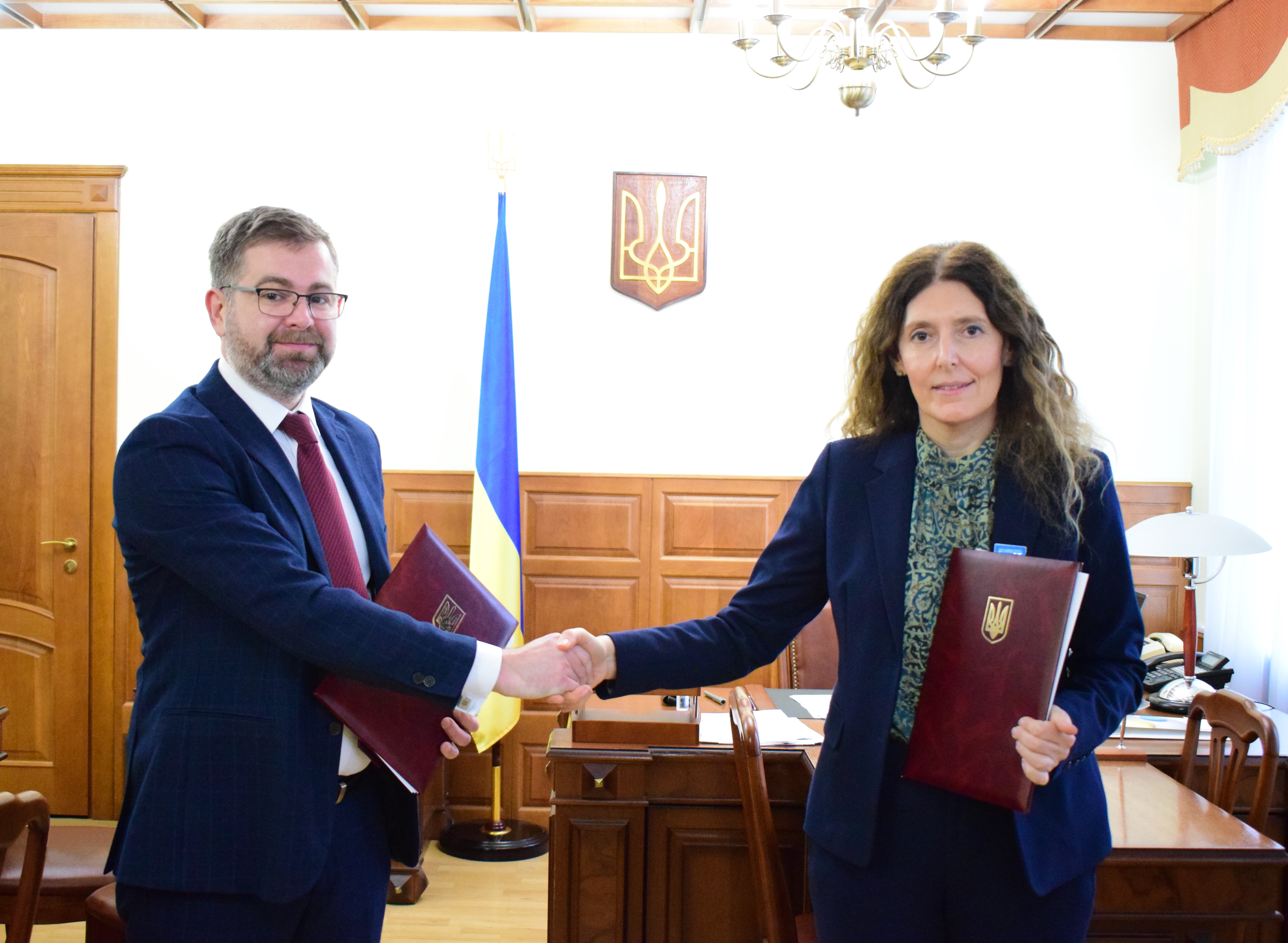15 12 2021Голова Держенергоефективності Валерій Безус та директор міжнародного офісу UNOPS Міхела Телатін уклали Меморандум про взаєморозуміння.