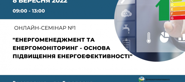 Перший вебінар на тему «Енергоменеджмент та енергомоніторинг - основа підвищення енергоефективності» відбудеться 8 вересня о 09:00.