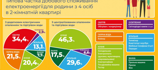 За розрахунками, наведеними Міненерго, протягом доби споживачі витрачають найбільше електроенергії на додатковий обігрів приміщення та роботу бойлера, а також кухонні прилади.
