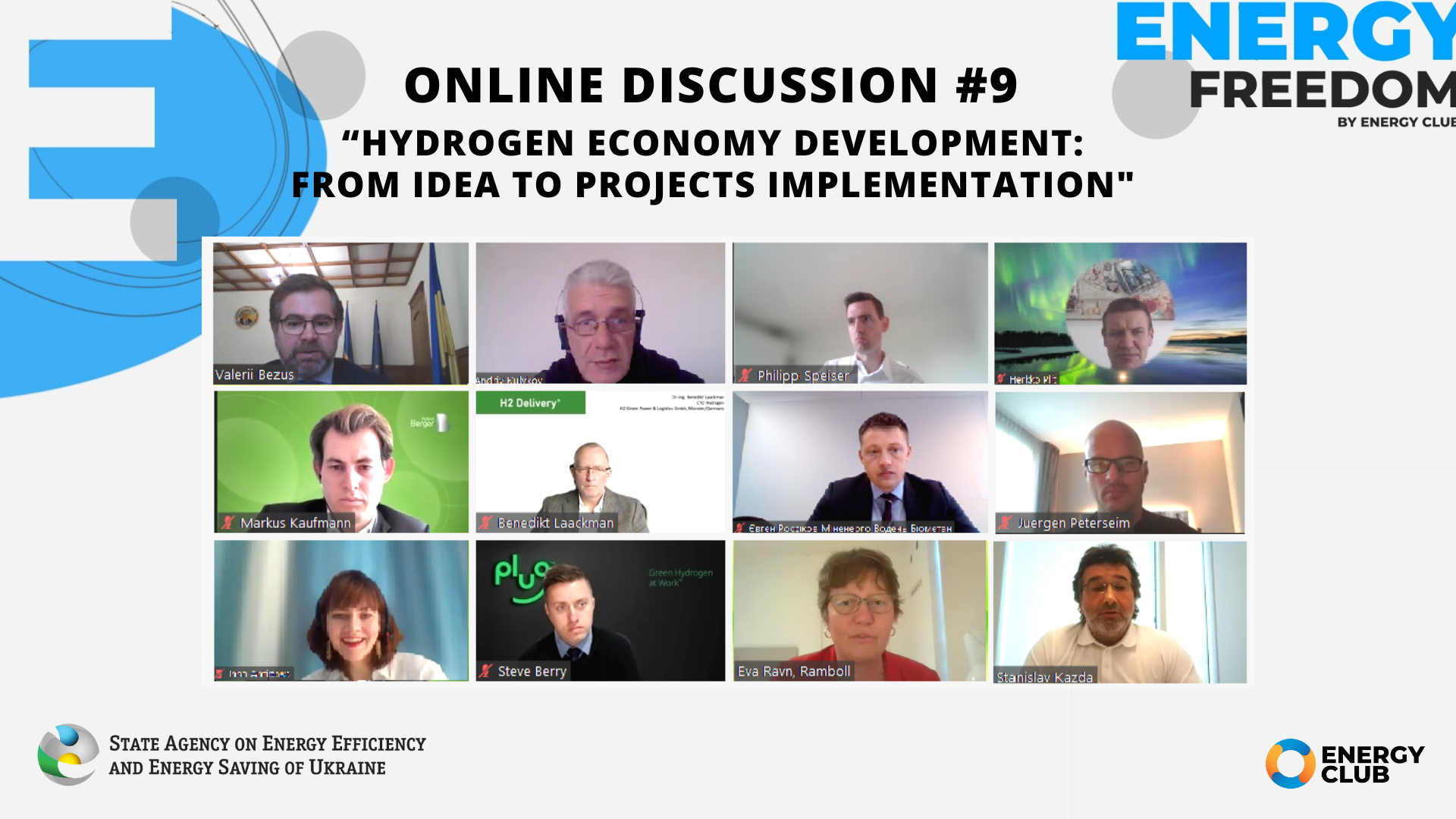 24 10 2022Держенергоефективності разом із найбільшою енергетичною спільнотою «Energy Club» об’єднало представників провідних компаній Німеччини, Данії, Фінляндії, Франції, Великобританії, щоб обговорити тему "Розбудова водневої економіки: від ідеї до реалізації проєктів".