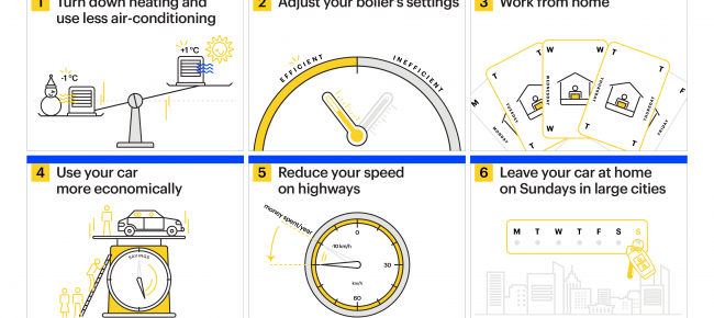 Громадяни та уряди європейських країн можуть досягти значних результатів, якщо діятимуть спільно та рішуче. Тому Міжнародне енергетичне агентство (МЕА) у координації з Європейською комісією розробило низку простих кроків, які громадяни можуть зробити для економії енергії вже зараз, спираючись на нещодавній 10-кроковий план МЕА щодо зменшення залежності Європейського Союзу від російського природного газу та 10-кроковий план щодо скорочення використання нафти. У аналізі також визначено дії, які можуть вжити компанії, національні уряди, щоб підтримати заходи споживачів та впровадити ще більшу економію енергії.