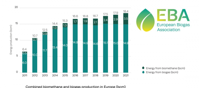 09 12 2022У 2021 року в ЄС було вироблено 3,5 млрд м3 біометану, що на 20% більше, ніж у 2020 році, повідомила Європейська біогазова асоціація.