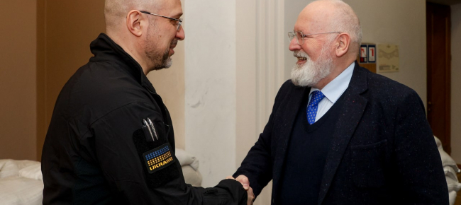 Енергетичну стійкість України та зниження впливу росії на енергетичний сектор Європейського Союзу обговорили під час зустрічі в Києві Прем’єр-міністр України Денис Шмигаль та Виконавчий віце-президент Європейської комісії з питань Європейського зеленого курсу Франс Тіммерманс.