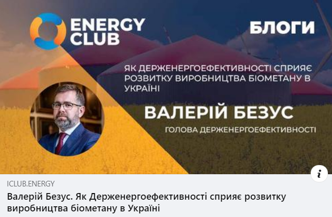 01 02 2023«Україна має вагомий потенціал біомаси та органічних відходів для виробництва енергії, і попри труднощі, викликані військовою агресією з боку росії, інтерес саме до біометанового виробництва стрімко зростає. Необхідність оперативного створення правового та організаційного підґрунтя для розвитку цього напрямку зумовлене великим вікном можливостей для України», - пояснив Валерій Безус у своєму блозі на сайті найбільшої в Україні енергетичної спільноти «Energy Club».