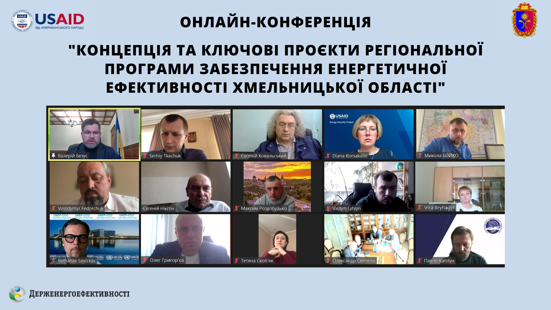 10 03 2023За ініціативи Хмельницької ОВА та USAID, а також за участю Валерія Безуса відбулася онлайн-конференція, присвячена розробленій концепції Регіональної програми забезпечення енергетичної ефективності Хмельницької області.