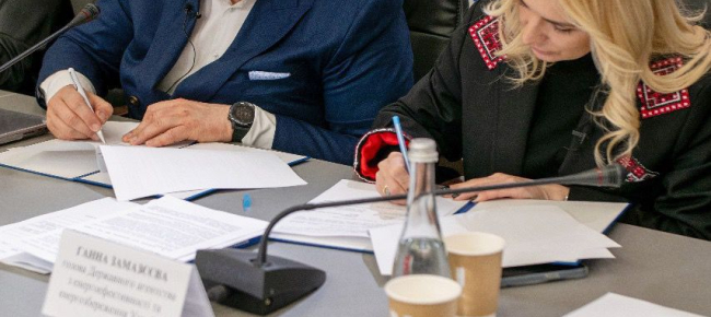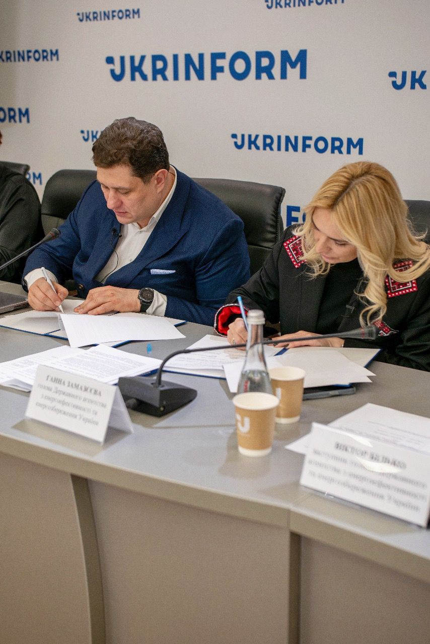 Меморандум про співпрацю підписали Голова Держенергоефективності Ганна Замазєєва та заступник генерального директора Української енергетичної біржі Костянтин Шевчук під час брифінгу в ІА «Укрінформ».