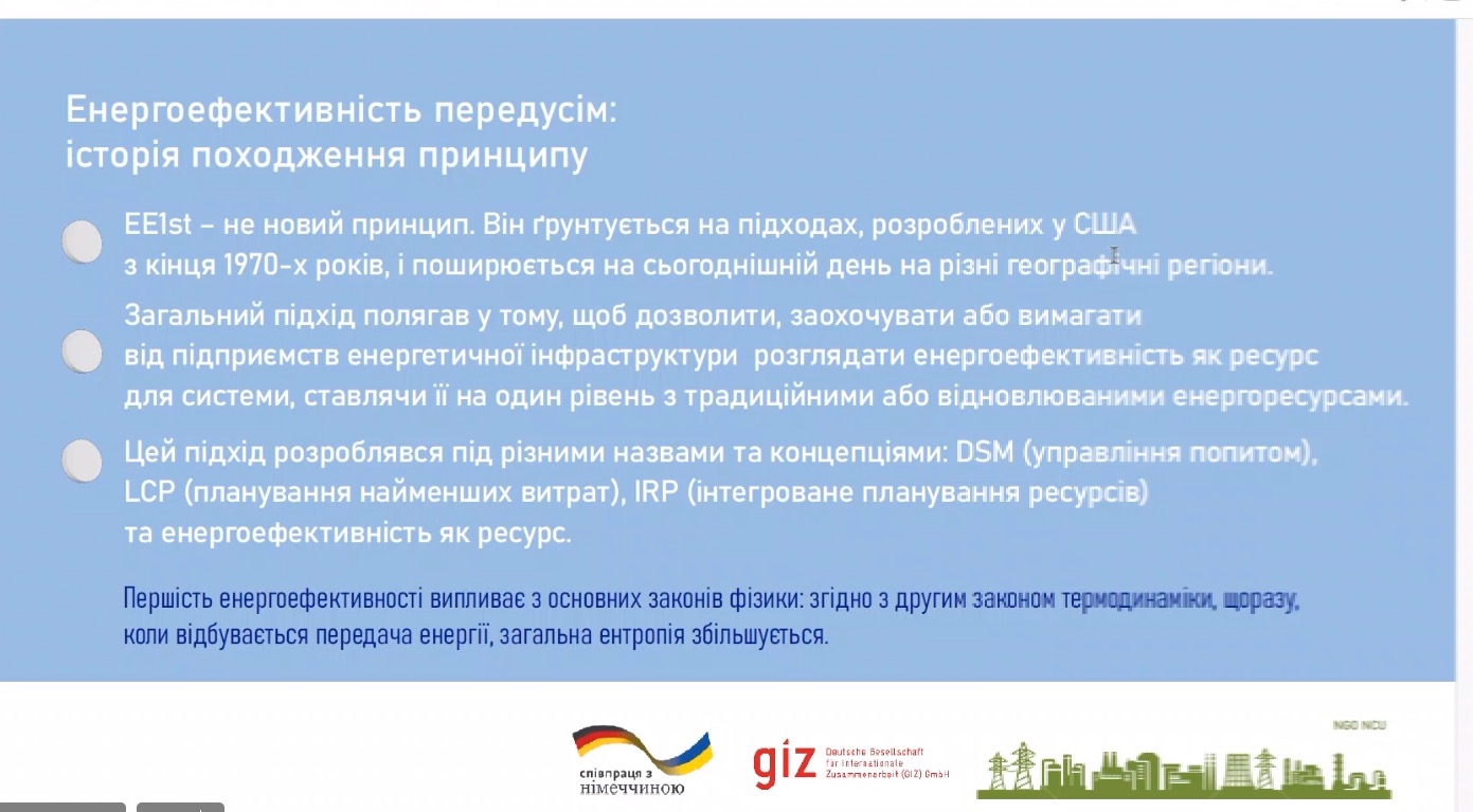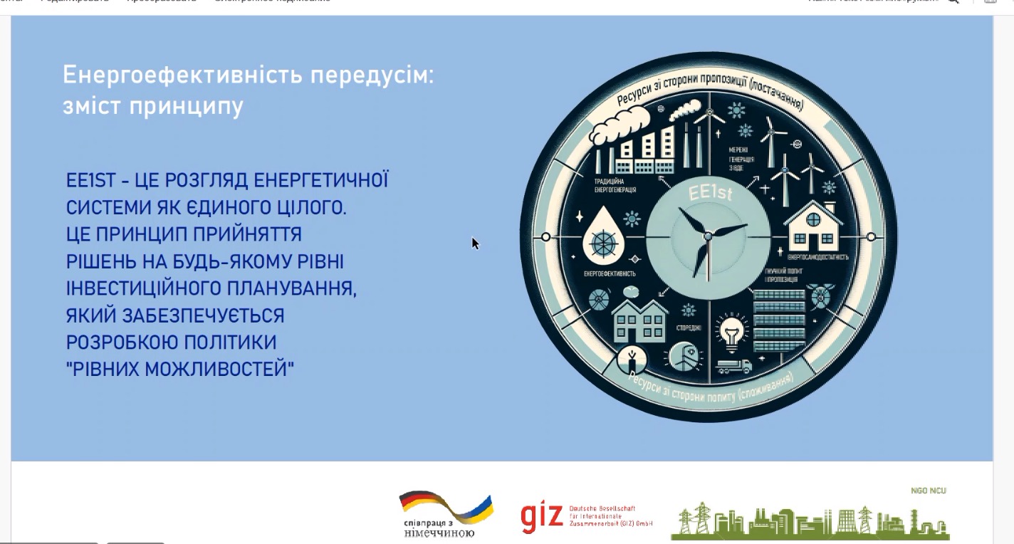 Цей захід був перший із серії семінарів, які сприятимуть інтеграції принципу «Енергоефективність передусім» в український контекст.