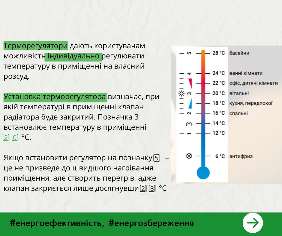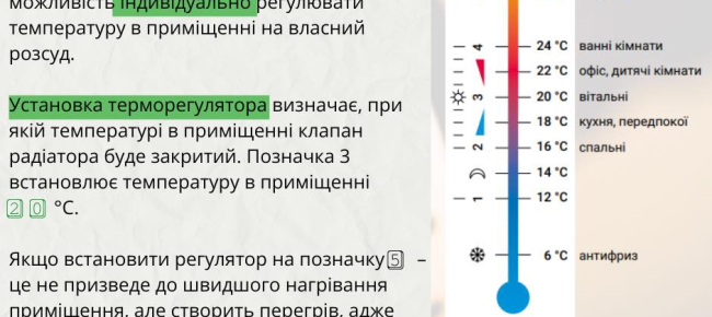 можливість індивідуально регулювати температуру в приміщенні на власний