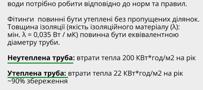 Для оптимізації енергоефективності та запобігання втратам тепла необхідна ефективна ізоляція труб. При правильній ізоляції трубопроводів втрати тепла зводяться до мінімуму.