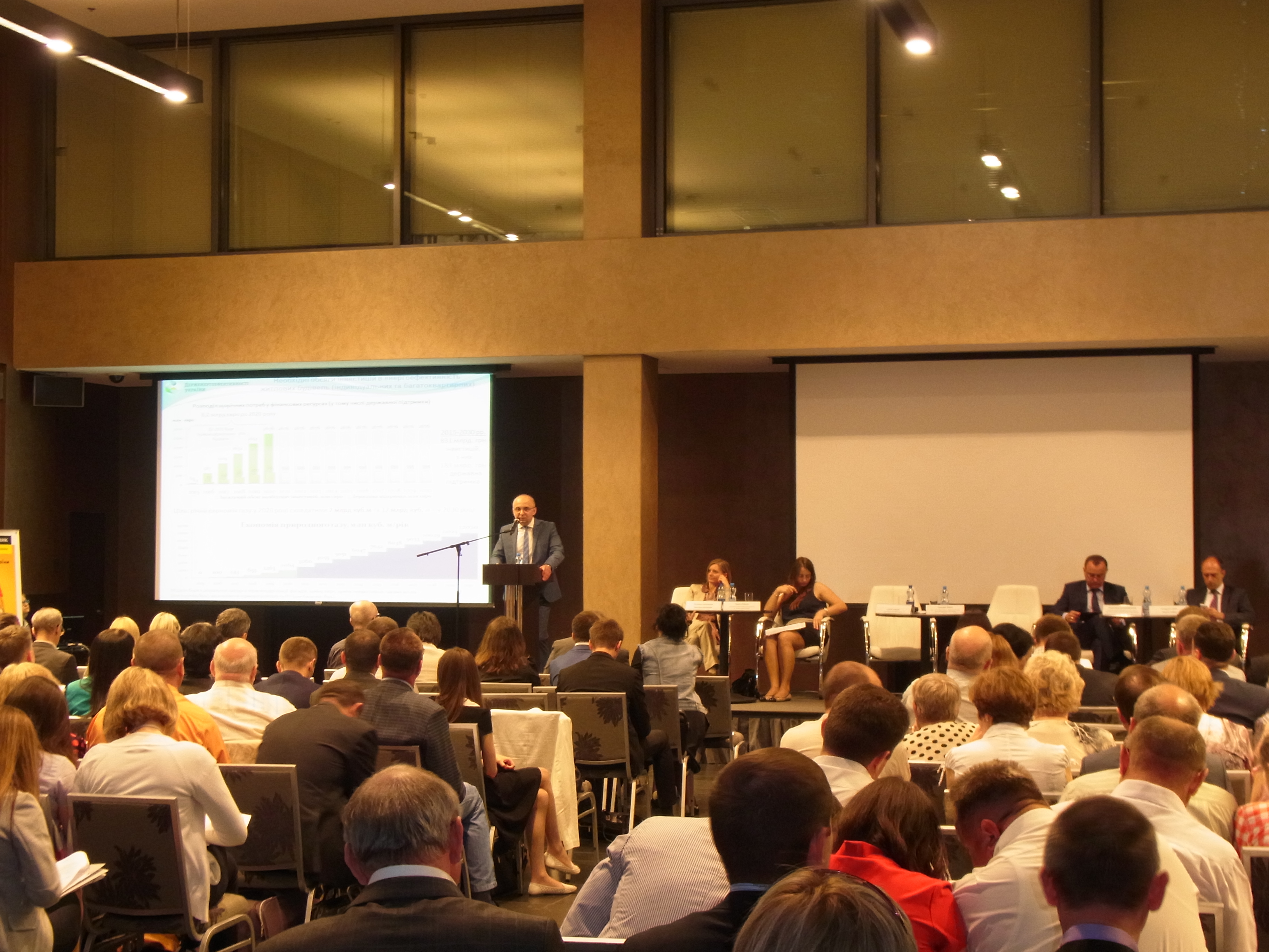 «Сьогодні одним з головних завдань Агентства є залучення місцевих бюджетів до співфінансування державних програм з енергоефективності, а саме відшкодування відсотків за наданими кредитами на утеплення житла. Сьогоднішній захід, який зібрав у цій залі понад 350 представників з різних областей України, покликаний сприяти вирішенню цього питання. Форум енергоефективного партнерства – це один із дієвих інструментів налагодження співпраці з регіонами», - про це повідомив Голова Держенергоефективності Сергій Савчук та закликав представників областей України працювати разом у цьому напрямку.