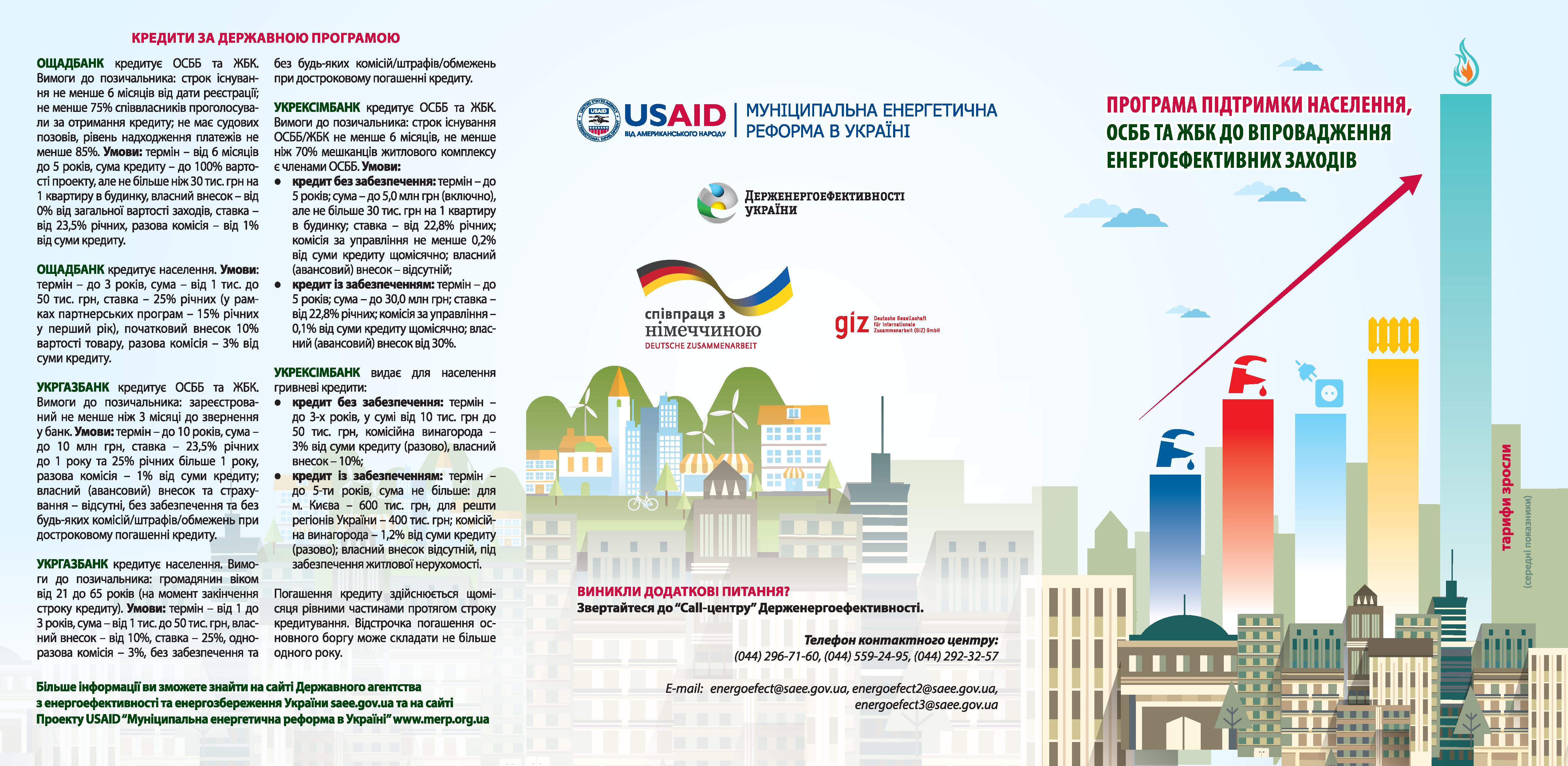 21 09 2015Як скористатися державною підтримкою на впровадження енергоефективних заходів? Як зробити будинок енергоефективним? Які переваги встановлення ІТП? Відповіді на ці та інші запитання можна отримати у брошурі, підготовленій Держенергоефективності у співпраці з Проектом USAID "Муніципальна енергетична реформа в Україні" та Проектами Німецького товариства міжнародного співробітництва (GIZ).