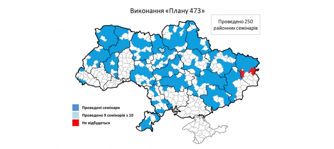 Нагадаємо, що на сьогодні семінари-практикуми вже проведено у 250 районних центрах України. Зокрема, 18 вересня відбулося 18 заходів. Найбільш зацікавленими у програмі з енергоефективності виявились мешканці таких районів країни: Березанського району (Миколаївська область), Козельщинського району(Полтавська область), Ізюмського району (Харківська область), Немирівського району (Вінницька область), Носівського району (Чернігівська область), Новоукраїнського району (Кіровоградська область),Олевського району (Житомирська область).