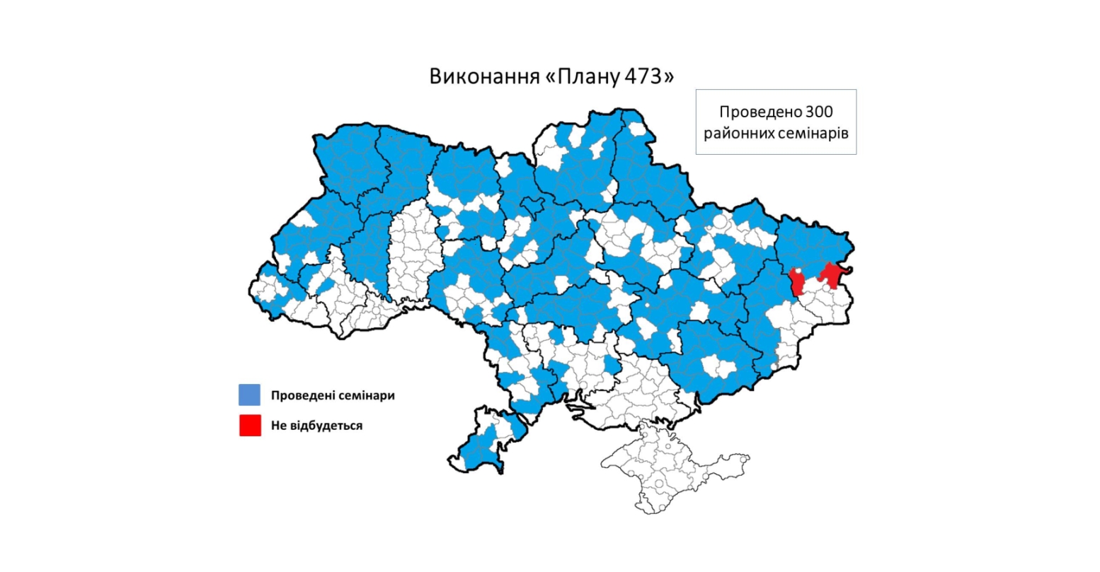 На сьогодні семінари-практикуми проведено вже у 300 районах України. Зокрема, 25 вересня відбулося 18 заходів. Найбільш зацікавленими у впровадженні державної програми виявились мешканці Погребищинського району (Вінницька область) та Шосткинського району (Сумська область).